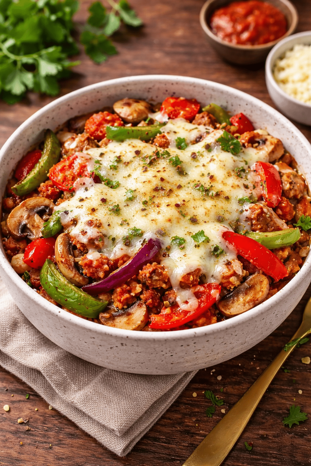 Ce Bol végétarien façon pizza est un plat complet, riche en légumes et en protéines végétales.