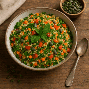 Il s’imprègne doucement d’un mélange d’épices chaleureuses — cumin, paprika fumé, origan — révélant une profondeur aromatique équilibrée et élégante.