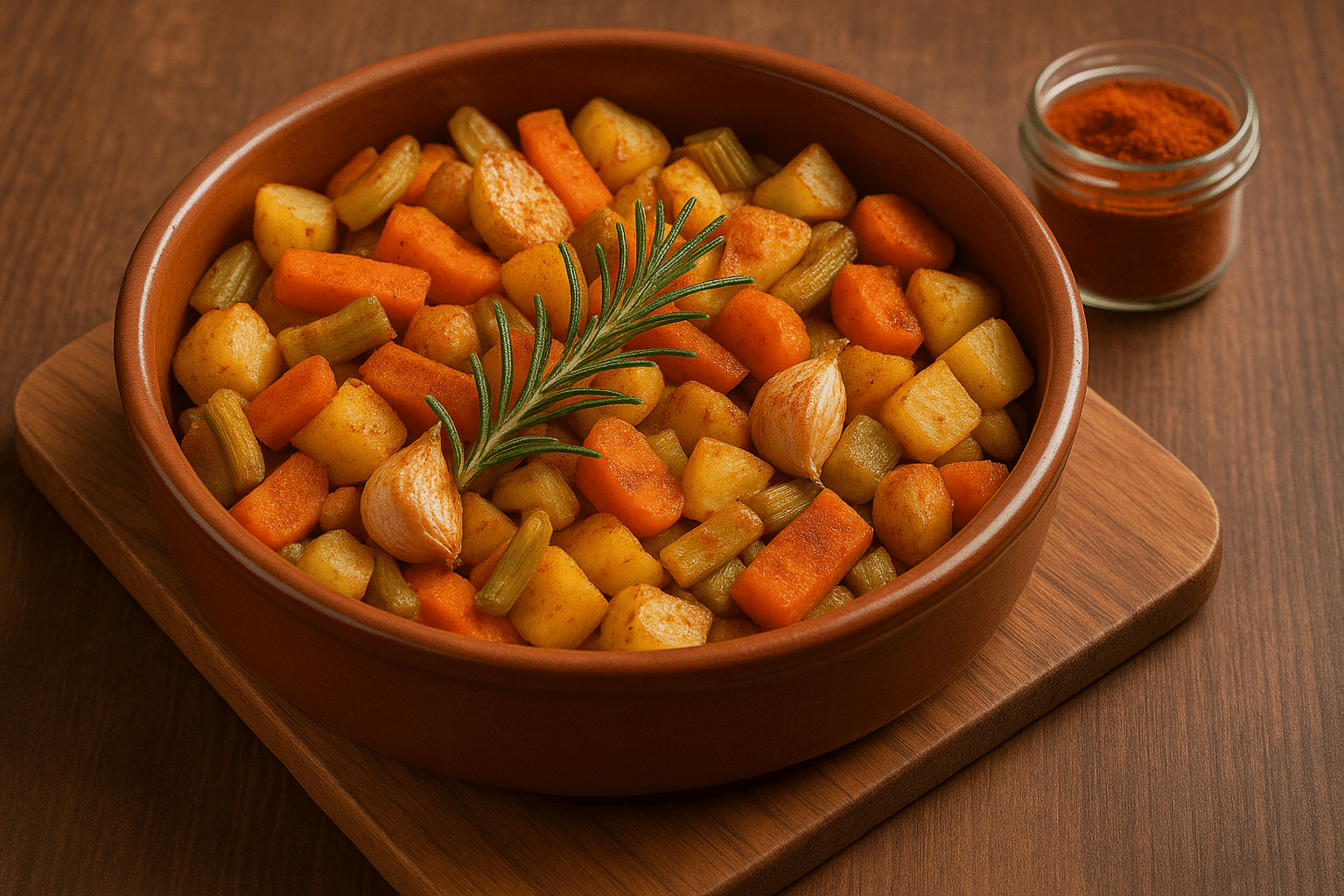 Émincé de légumes rôtis au paprika met à l’honneur la simplicité et la gourmandise. les légumes de saison rôtis au four, ce qui révèle leur douceur naturelle et leur fondant. Le paprika apporte une note légèrement fumée et épicée, qui rehausse la richesse aromatique de chaque bouchée.