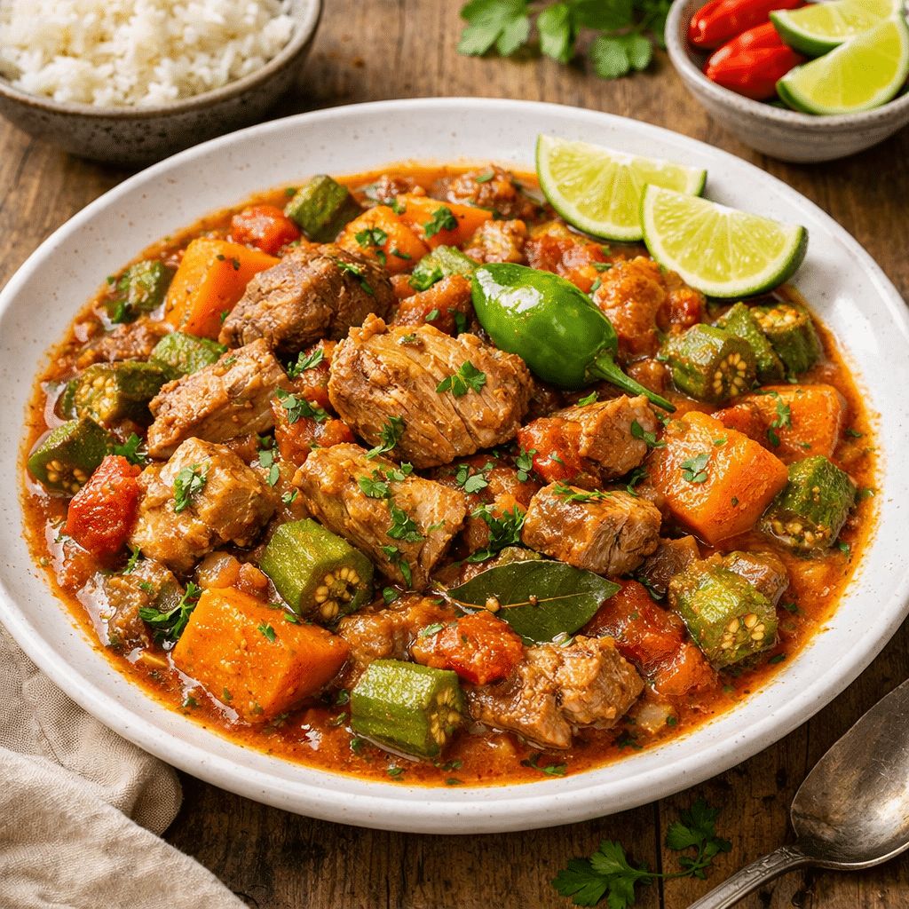 Notre Ragoût de Porc au Gombos & Patate Douce est un véritable voyage culinaire entre traditions créoles et influences africaines.