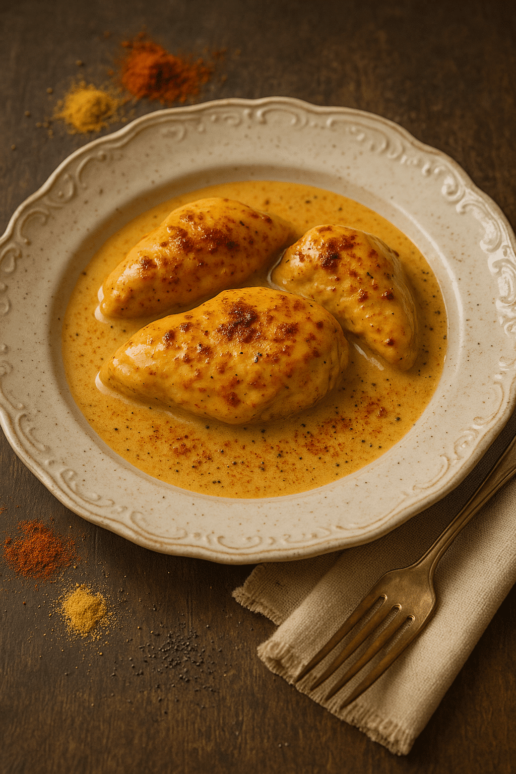 Le poulet fermier soutient la vitalité, le paprika fumé apporte des antioxydants naturels, et la crème (ou sa version végétale) offre une touche d’onctuosité bien tolérée.